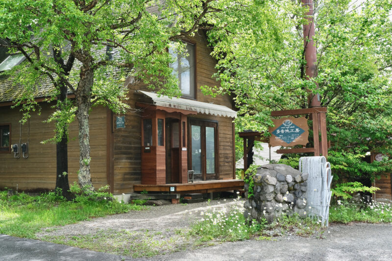 工房は国道141号線より20メートルほど入った所で、国道から見えます。(最近は緑の季節は見えづらい)